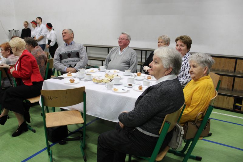 Podczas wydarzenia Członek Zarządu Powiatu Roman Tasarz przekazał kosz słodkości na ręce Przewodniczącej Sekcji Emerytów i Rencistów ZNP Pani Stanisławy Kamińskiej.