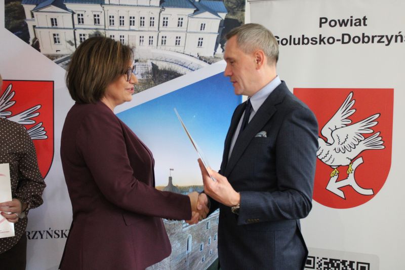 Z okazji Dnia Edukacji Narodowej w dniu 10 października 2025 r. w Starostwie Powiatowym w Golubiu-Dobrzyniu odbyło się uroczyste spotkanie z wyróżnionymi nauczycielami oraz dyrektorami szkół i placówek oświatowych, dla których organem prowadzącym jest Powiat Golubsko-Dobrzyński.
