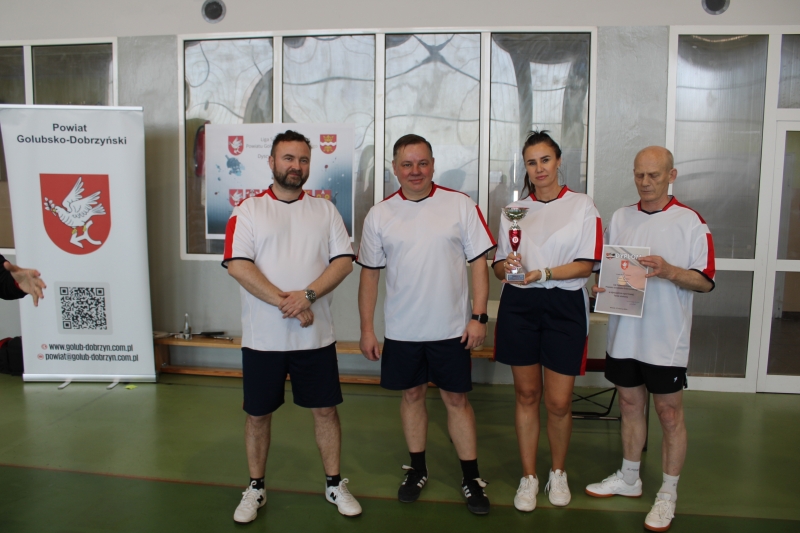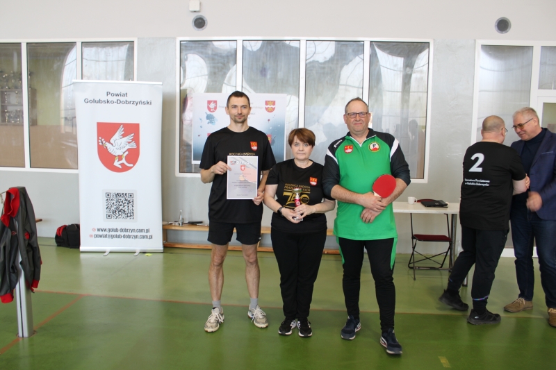 W dniu 27 marca 2026 r. w hali sportowej Zespołu Szkolno-Przedszkolnego we Wrockach odbyły się zawody sportowe dla przedstawicieli samorządów z terenu powiatu golubsko-dobrzyńskiego w tenisie stołowym. Była to druga impreza wchodząca w skład rywalizacji samorządów w ramach organizacji Ligi Samorządowej Powiatu Golubsko-Dobrzyńskiego. Gospodarzami zawodów była Gmina Golub-Dobrzyń, której dziękujemy za zaangażowanie w organizacje turnieju. Podczas rywalizacji uczestnicy w miłej sportowej atmosferze prezentowali wysoki poziom sportowy oraz nietuzinkowe zagrania. Zawodników przywitał Wicestarosta Golubsko-Dobrzyński Pan Zbigniew Warnel (reprezentant Starostwa Powiatowego w Golubiu-Dobrzyniu), Pan Sławomir Rożek – Radny Powiatu Golubsko-Dobrzyńskiego kibicujący jednocześnie Gminie Radomin, Pan Mirosław Suski – dyrektor Zespołu Szkolno-Przedszkolnego we Wrockach oraz Powiatowy Organizator Sportu Szkolnego Pan Bogdan Oskwarek.