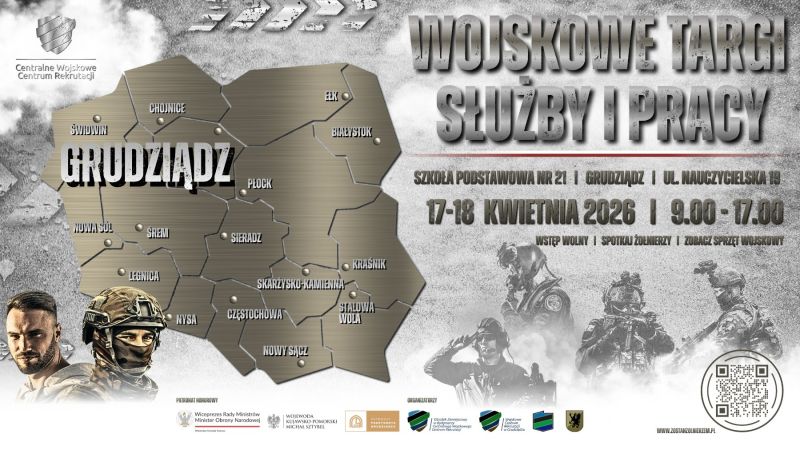 Ministerstwo Obrony Narodowej oraz Centralne Wojskowe Centrum Rekrutacji zapraszają w dniach 17 - 18 kwietnia 2026 r. (piątek - sobota) na 𝗪𝗼𝗷𝘀𝗸𝗼𝘄𝗲 𝗧𝗮𝗿𝗴𝗶 𝗦ł𝘂ż𝗯𝘆 𝗶 𝗣𝗿𝗮𝗰𝘆 w Płocku oraz w 15 innych miastach. To szansa dla wszystkich, którzy chcą zasilić szeregi Wojska Polskiego oraz podjąć nowe wyzwania w swoim życiu.