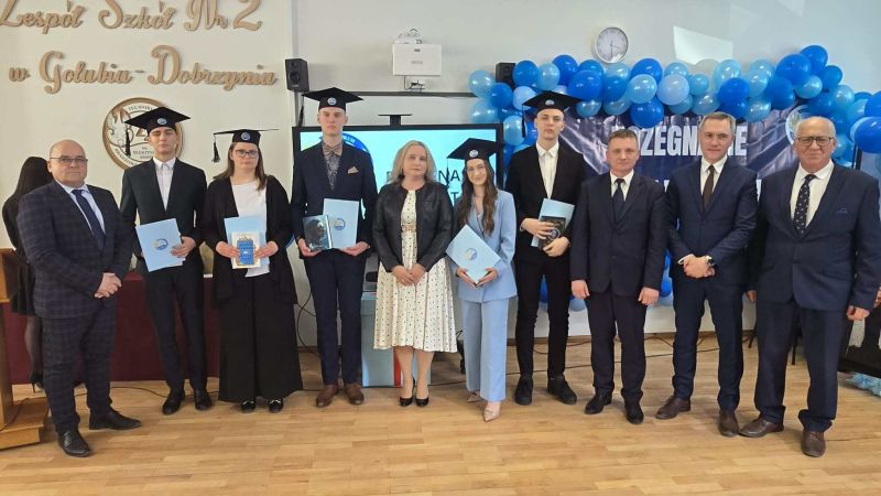 Dnia 24 kwietnia 2026 r. Starosta Golubsko-Dobrzyński Jacek Foksiński, Wicestarosta Golubsko-Dobrzyński Zbigniew Warnel i Członek Zarządu Powiatu Roman Tasarz uczestniczyli w zakończeniach nauki klas maturalnych w Zespole Szkół w Kowalewie Pomorskim, Zespole Szkół nr 2 w Golubiu-Dobrzyniu oraz Zespole Szkół nr 1 im. Anny Wazówny w Golubiu - Dobrzyniu. Absolwentom z Zespołu Szkół w Kowalewie Pomorskim towarzyszyli również Wiceprzewodniczący Rady Powiatu Andrzej Grabowski i radny powiatowy Roman Ratyński.
