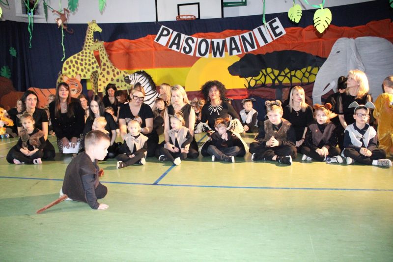 Po występach artystycznych przygotowanych przez dzieci, wychowawców i pracowników przyszedł czas na najważniejszy moment – pasowanie na ucznia i przedszkolaka. Aktu pasowania dokonała Dyrektor szkoły, Pani Kinga Olejnik.
