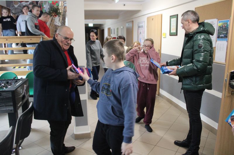 Z okazji Mikołajek, Starosta Golubsko-Dobrzyński Jacek Foksiński oraz Wicestarosta Golubsko-Dobrzyński Zbigniew Warnel odwiedzili placówki prowadzone przez Powiat Golubsko-Dobrzyński, aby obdarować prezentami i słodkościami podopiecznych Domu Pomocy Społecznej w Golubiu-Dobrzyniu, Powiatowej Placówki Opiekuńczo-Wychowawczej w Golubiu-Dobrzyniu, Powiatowej Placówki Opiekuńczo-Wychowawczej w Wielgiem, Powiatowego Centrum Opiekuńczo-Mieszkalnego w Golubiu-Dobrzyniu, Specjalnego Ośrodka Szkolno-Wychowawczego w Wielgiem, Powiatowego Środowiskowego Domu Samopomocy w Golubiu- Dobrzyniu, a także maluchów z Przedszkola przy Zespole Szkół nr 3 w Golubiu-Dobrzyniu.