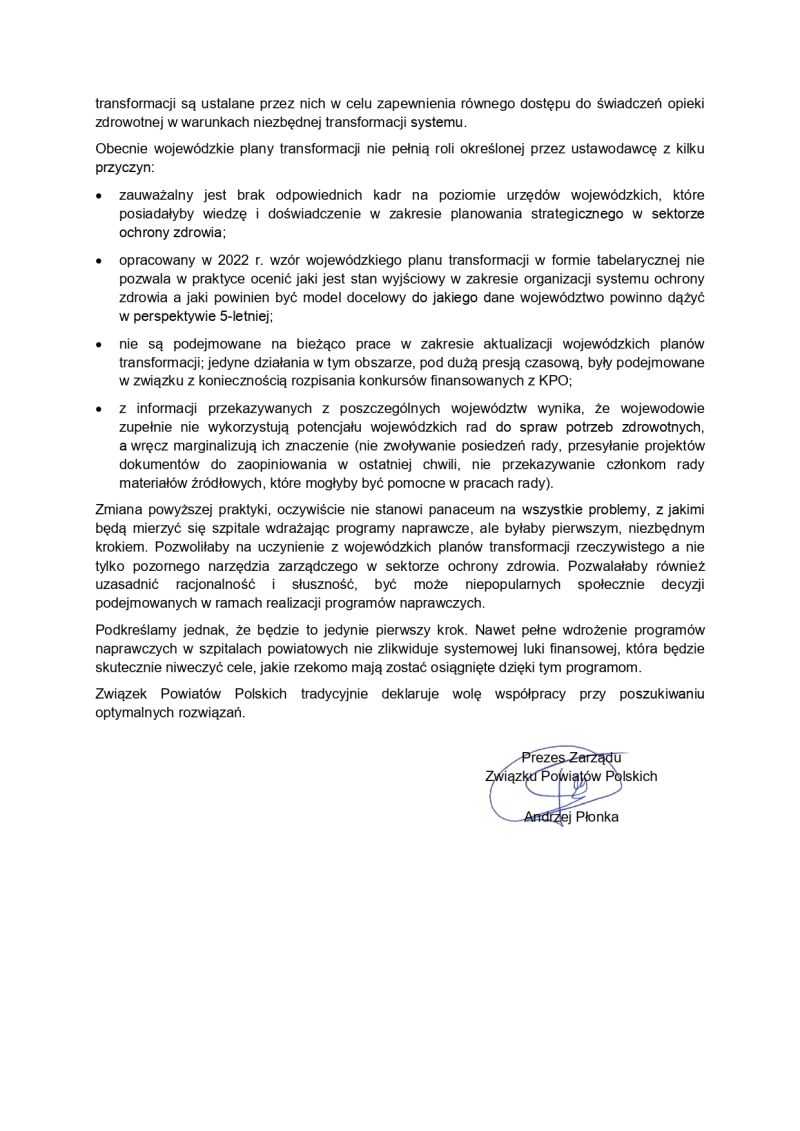 W ocenie samorządów obecne trudności nie mają charakteru lokalnego, lecz systemowy. Brak adekwatnych rozwiązań przekłada się bezpośrednio na bezpieczeństwo pacjentów, stabilność szpitali oraz zdolność samorządów do dalszego ponoszenia ciężaru finansowego funkcjonowania ochrony zdrowia.