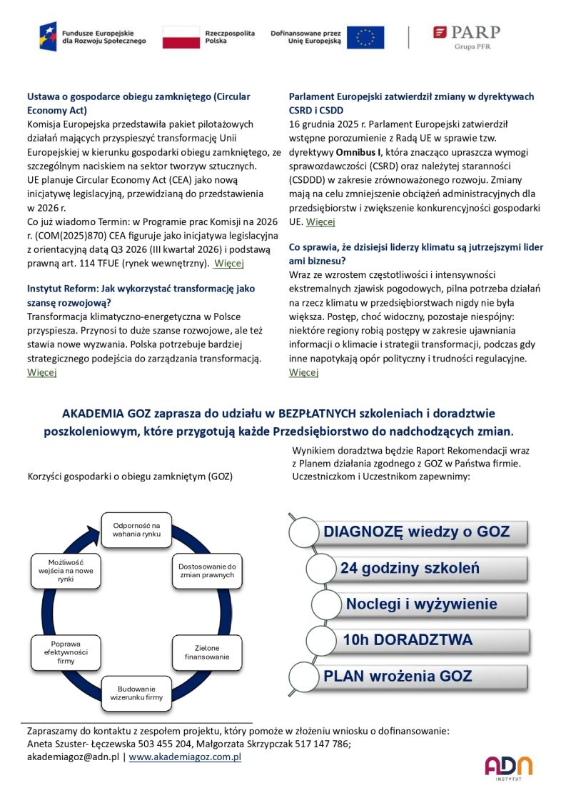 Akademia GOZ zachęca do udziału w projekcie Akademia GOZ, który jest realizowany przez Krajową Izbę Gospodarczą oraz Instytut ADN sp. z o.o. sp. k. Numer projektu: FERS.01.03-IP.09-0086/23.