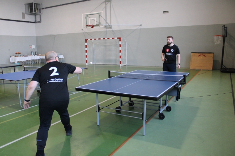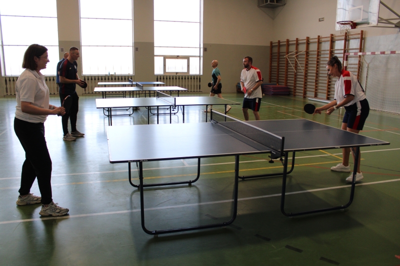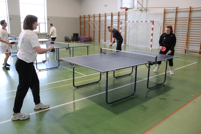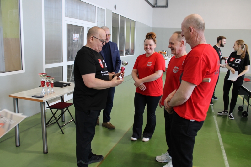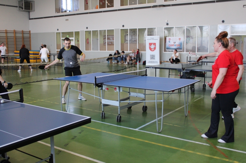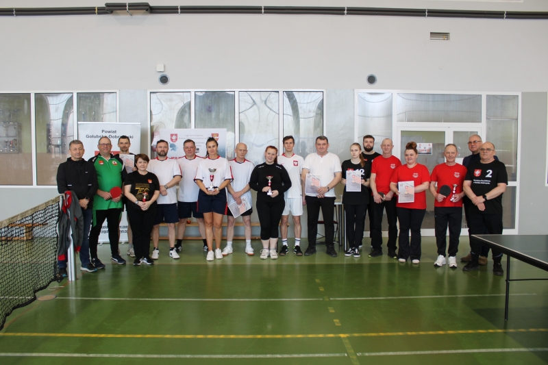 W dniu 27 marca 2026 r. w hali sportowej Zespołu Szkolno-Przedszkolnego we Wrockach odbyły się zawody sportowe dla przedstawicieli samorządów z terenu powiatu golubsko-dobrzyńskiego w tenisie stołowym. Była to druga impreza wchodząca w skład rywalizacji samorządów w ramach organizacji Ligi Samorządowej Powiatu Golubsko-Dobrzyńskiego. Gospodarzami zawodów była Gmina Golub-Dobrzyń, której dziękujemy za zaangażowanie w organizacje turnieju. Podczas rywalizacji uczestnicy w miłej sportowej atmosferze prezentowali wysoki poziom sportowy oraz nietuzinkowe zagrania. Zawodników przywitał Wicestarosta Golubsko-Dobrzyński Pan Zbigniew Warnel (reprezentant Starostwa Powiatowego w Golubiu-Dobrzyniu), Pan Sławomir Rożek – Radny Powiatu Golubsko-Dobrzyńskiego kibicujący jednocześnie Gminie Radomin, Pan Mirosław Suski – dyrektor Zespołu Szkolno-Przedszkolnego we Wrockach oraz Powiatowy Organizator Sportu Szkolnego Pan Bogdan Oskwarek.